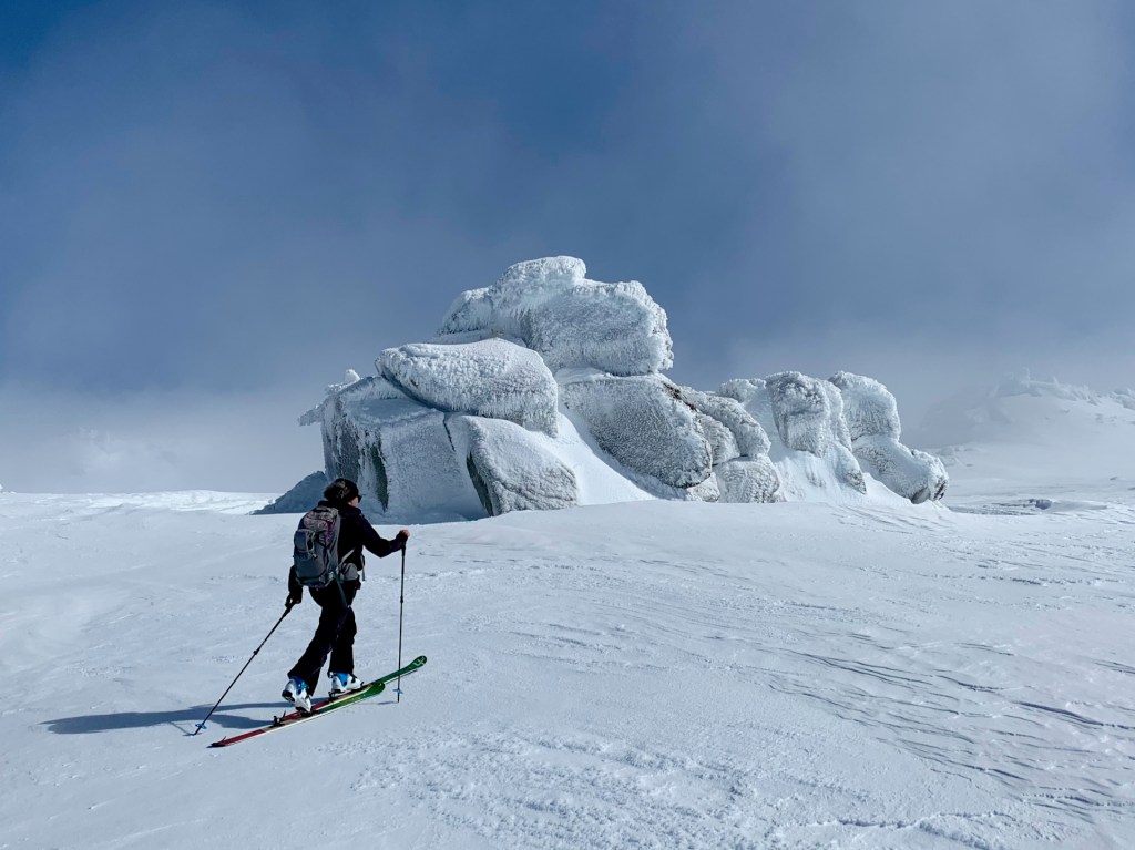 The following morning was the epic blue bird day we’d been counting on to explore the Western Faces, and we set off early for Tennyson Woods Knoll. Given it was a sunny Sunday, there were quite a few other groups out enjoying the day, so we ventured a bit further to get a clean line down Siren Song. The snow had softened quickly in the morning sun and the terrain was on par with anything I’ve skied around the world, with steep open bowls and a seemingly endless fall line. After a long climb back out, we put a second lap in down a different line before a hot midday exit.