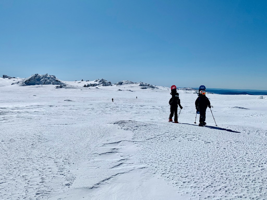 The people who’d been smart enough to book this week in advance had days of blue skies and fantastic snow to enjoy, and our gaggle of kids were keen to do some backcountry themselves on the Wednesday. We kitted them out with snowshoes so they could carry their snowboards and headed back to Bogong Creek for a beautiful day in the sun, with the snow having held up perfectly since the weekend. It’s always a delight to see kids have their first backcountry trip and the first question at the end of the day being “When can we do it again???”.