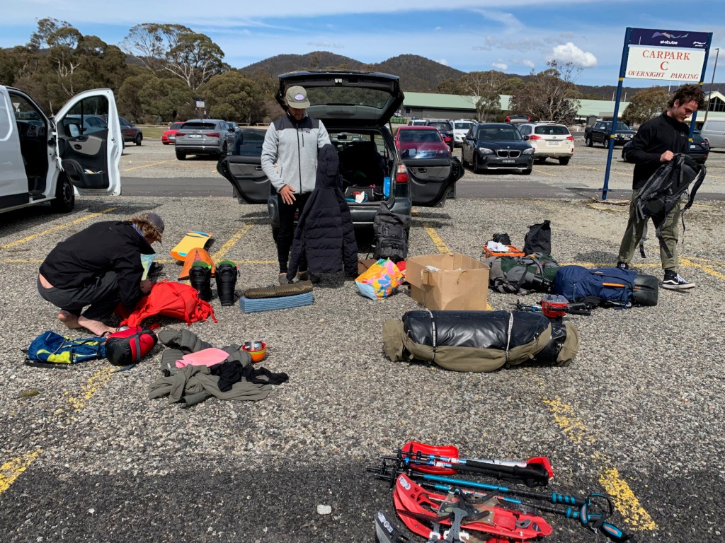 A quick turnaround at home saw me packing for our now annual Big Trip of the season – at least 3 nights and 4 days camping and skiing in the backcountry. After last year’s Thredbo to Guthega traverse, we wanted to get deeper into the Western Faces, so had decided to put a base camp at Little Twynam for good access each day. This meant lugging some heavy packs up, but a lot of comfort and flexibility once we were dug in. The initial weather forecast looked promising, so we were quite relaxed going to bed on the first night despite a bit of a breeze around the peaks.